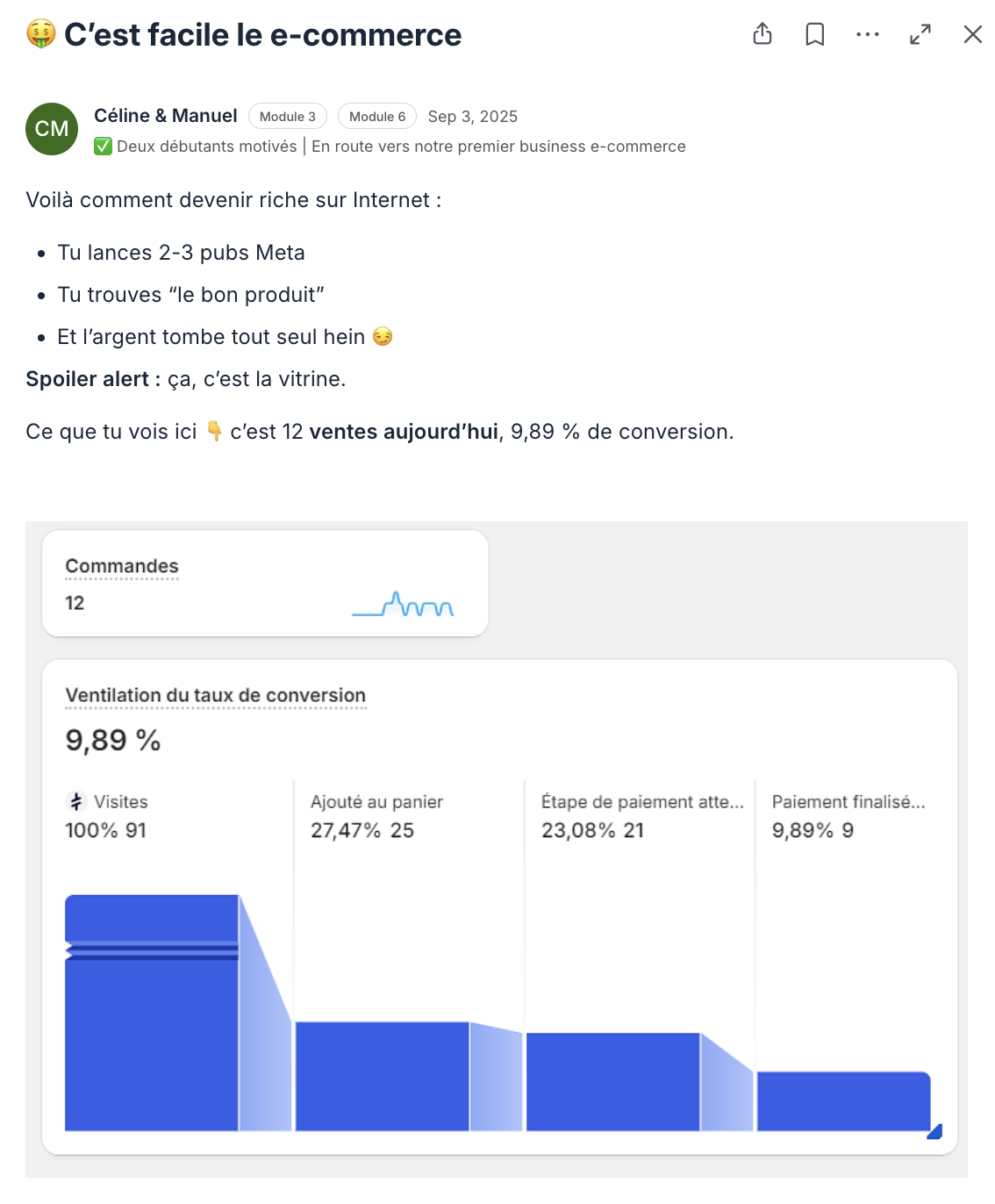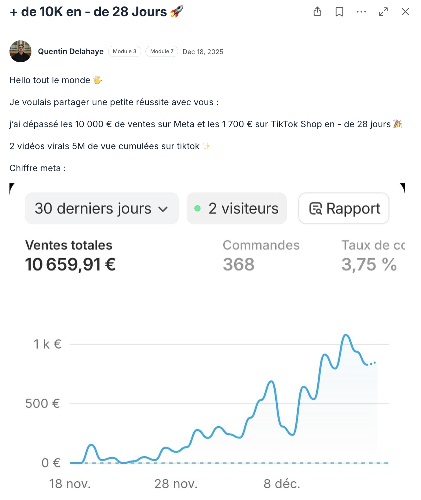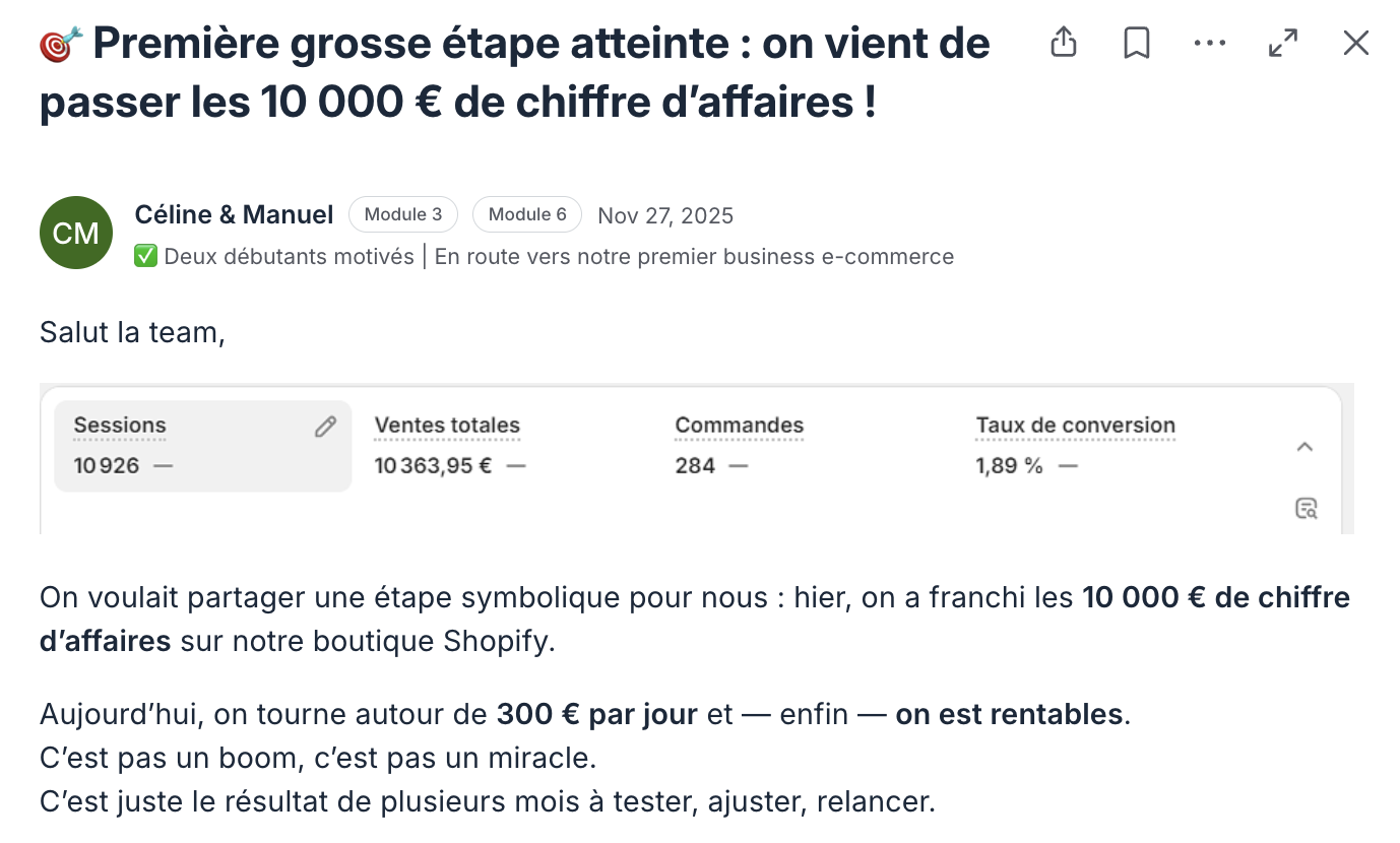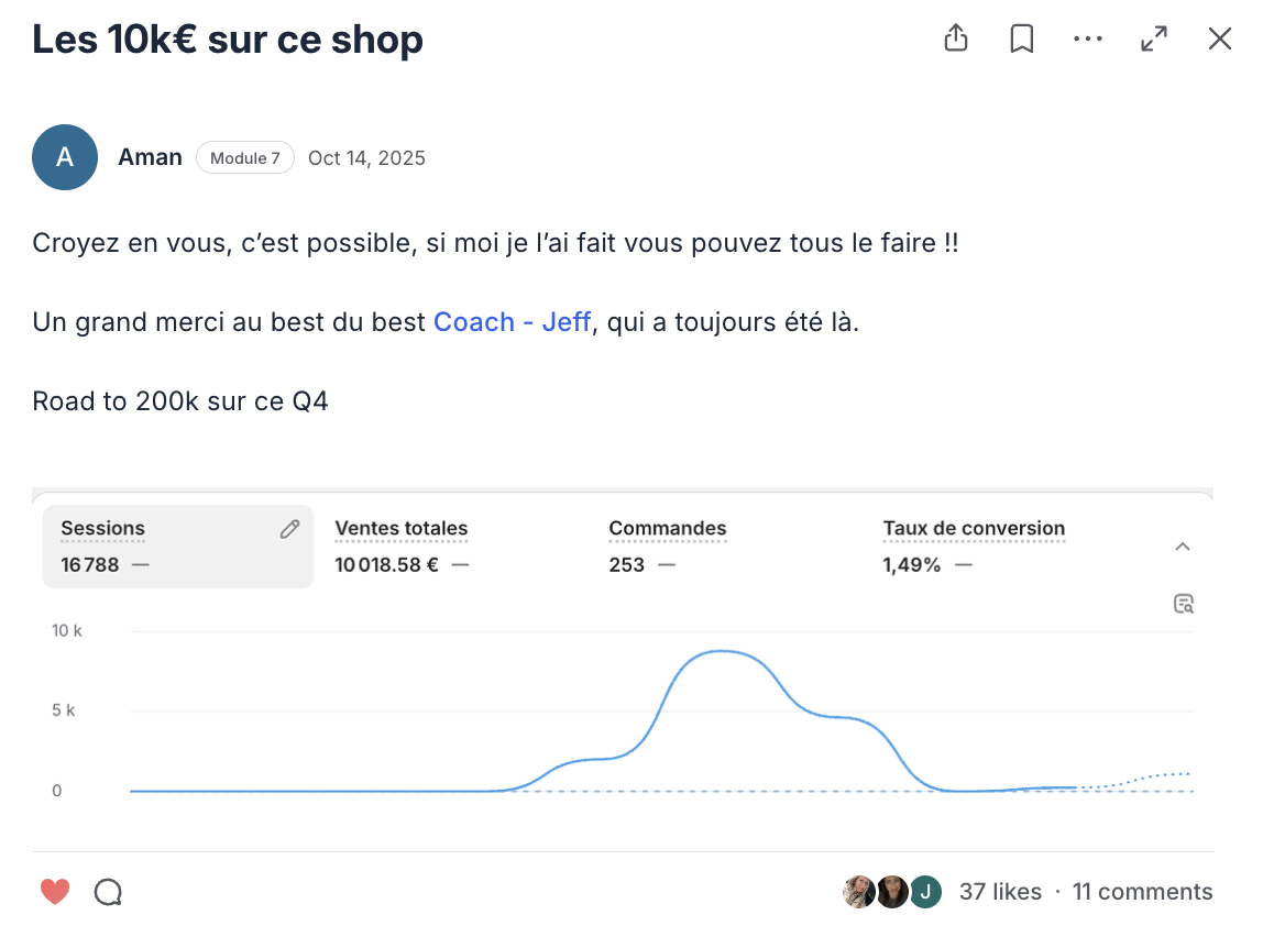 Un expert E-Commerce qui pilote encore sa propre boutique, applique au quotidien les méthodes qu’il vous transmet et a déjà traversé toutes les étapes qui vous attendent.